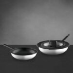 This 3-pc frying pan set contains two pans and one universal silicone glass lid with phenolic resin top handle for optimal usability. The 24 cm frying pan contains a high-quality non-stick coating for easy food release and healthy cooking. All BergHOFF downdraft products are perfect for all cooktops, cooker hoods and downdraft exhaust systems.