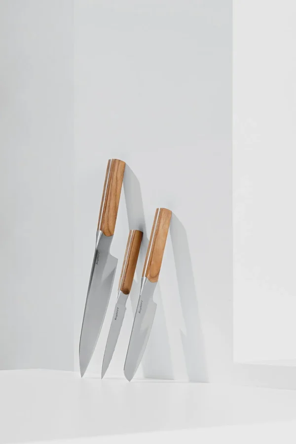 Composition | 1 x Chef’s knife 20 cm (8″) 1 x Santoku knife 12,50 cm (5″) 1 x Serrated utility knife 11,50 cm (5″) |