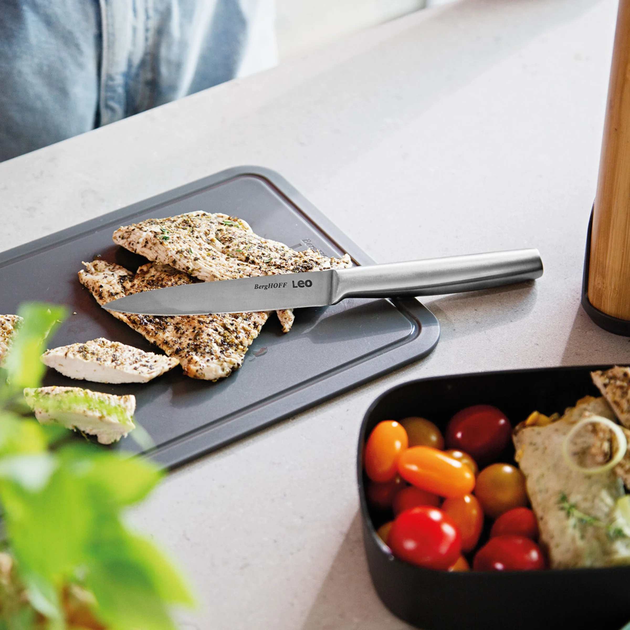 This 3-piece set includes a paring knife, utility knife and chef’s knife, the perfect starter knife set in your kitchen! The all-rounder chef’s knife is for slicing and dicing, the utility knife cleanly cuts foods with a hard exterior and soft interior, and the paring knife tackles all your small-scale cutting jobs.