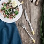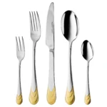 | Composition | 6x knife – 22,5 cm (9″) 6x spoon – 20 cm (8″) 6x fork – 20 cm (8″) 6x cake fork – 14,5 cm (6″) 6x coffee/tea spoon – 14 cm (6″) |