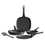 Composition | 1 x Frying pan non-stick Stone+ 20,00 cm – 8″ (SKU 3950586) (1,30 L / 1.5qt) 1 x Frying pan non-stick Stone+ 24,00 cm – 9.5″ (SKU 3950587) (2,20 L / 2.25qt) 1 x Grillpan non-stick Stone+ 26,00 cm – 10″ (SKU 3950589) (2,10 L / 2.25qt) 1 x Pancake pan non-stick Stone+ 25,00 cm – 10″ (SKU 3950590) (0,70 L / 24oz) 1 x Slotted turner Balance 35,00 x 8,00 x 4,50 cm – 14 x 3 x 2″ (SKU 3950416) |