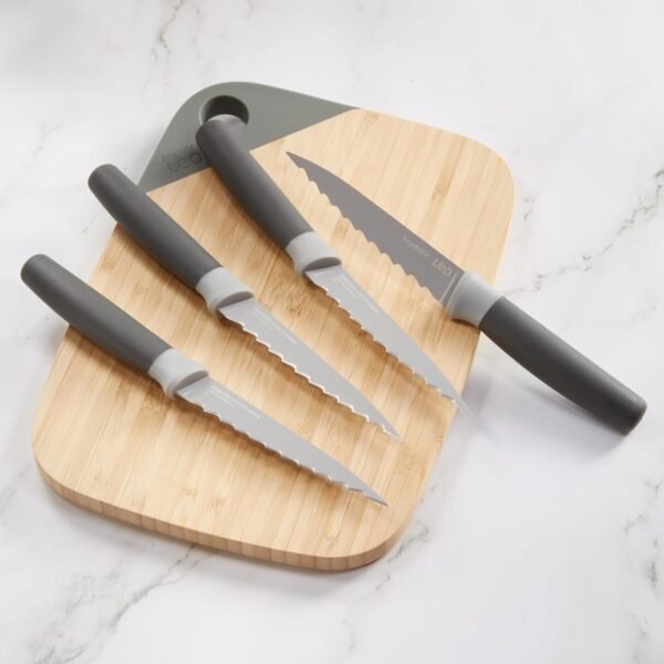 Whether you’re serving a sizzling steak right off the grill, a baked pork chop or a crispy pizza, the Leo steak knives are sure to cut the mustard. Your dinner guests will love the way the soft-grip handle fits in their hand and how the serrated stainless steel blade slices right through the meat thanks to its sharp teeth and non-stick coating. Let the Leo knives be your inspiration for a lovely family dinner or a delightful dinner party!