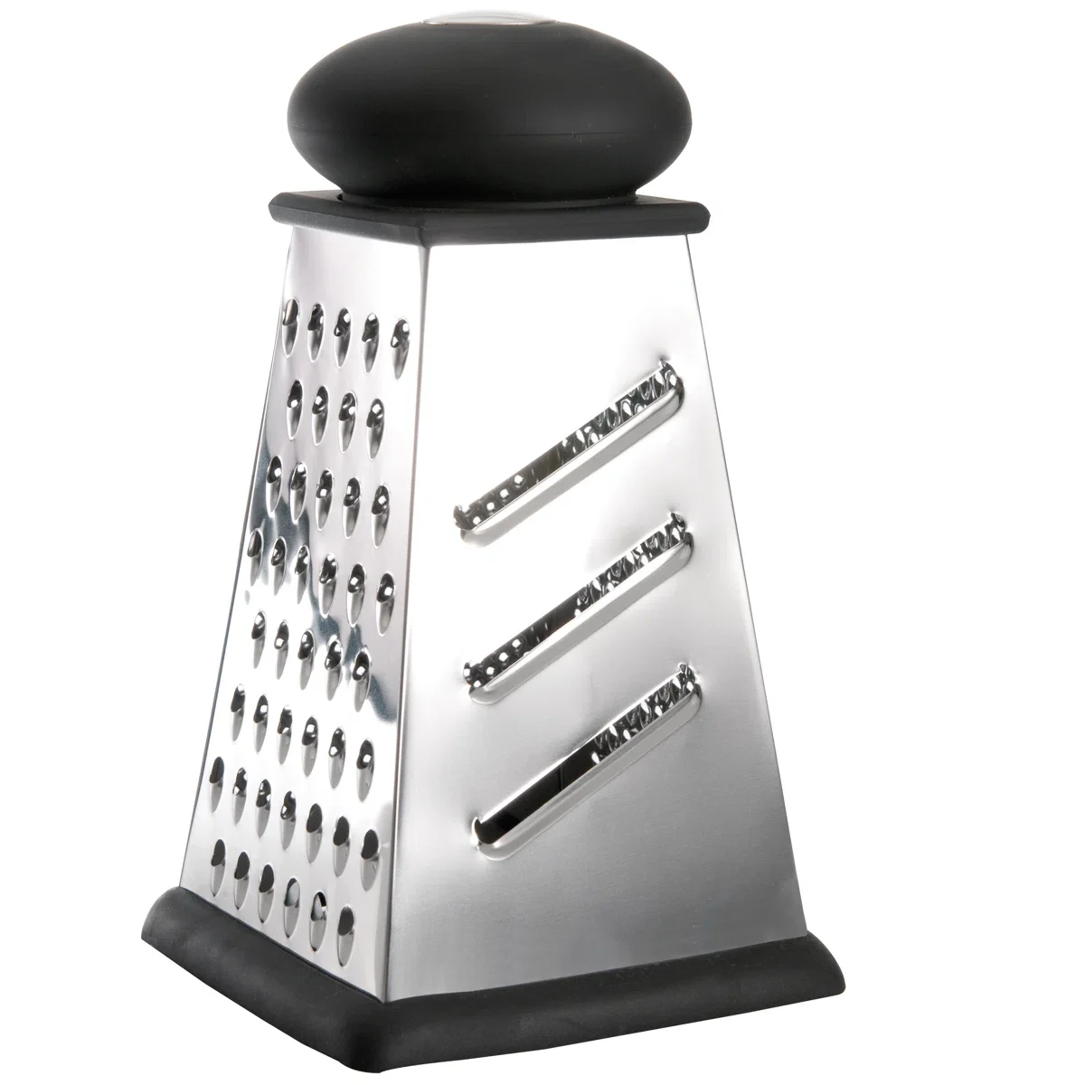 Whether you want to slice potatoes for a mouth-watering gratin Dauphinois, grate cheese to top off a homemade pizza or zest lime for a key lime cake, with this 4-sided square grater you always have the right blade within reach. Simply grab a hold of the handle with soft-touch coating and easily grate a wide variety of ingredients with the sharp stainless steel body. An added bonus is the grater’s rubber base that protects your kitchen countertop so you don’t have to worry about scratches or other marks.