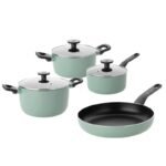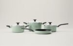 Composition | 1 x Covered Saucepan Sage 18cm (7″) 1.90L (2qt) 1 x Covered casserole Sage 20cm (8″) 2.90L (3qt) 1 x Covered casserole Sage 24cm (9.5″) 5.60L (6qt) 1 x Frypan Sage 24cm (9.5″) |