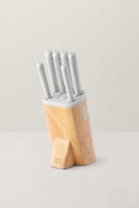 Composition | • 1 x chef’s knife Glints Spirit 20 cm (8″) • 1 x bread knife Glints Spirit 20 cm (8″) • 1 x carving knife Glints Spirit 20 cm (8″) • 1 x santoku knife Glints Spirit 17.5 cm (7″) • 1 x utility knife Glints Spirit 12.5 cm (5″) • 1 x paring knife Glints Spirit 9 cm (4″) • 1 x knife block with magnetic cap 22 Ă— 11.8 Ă— 14.2 cm (9 Ă— 5 Ă— 6″) • Kitchen scissors not included, available separately |