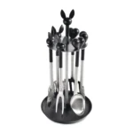 With 6 stainless steel kitchen utensils and 1 convenient racks for easy storage, this tool set is a must-have in every kitchen. Thanks to the racks you don’t waste valuable drawer space and have 6 of the most essential kitchen utensils at your fingertips to facilitate your daily cooking tasks. Whatever you’ve got on the menu, the serving spoon, soup ladle, meat fork, potato masher, spatula and skimmer give you all the help you need to conjure up a delicious dish!