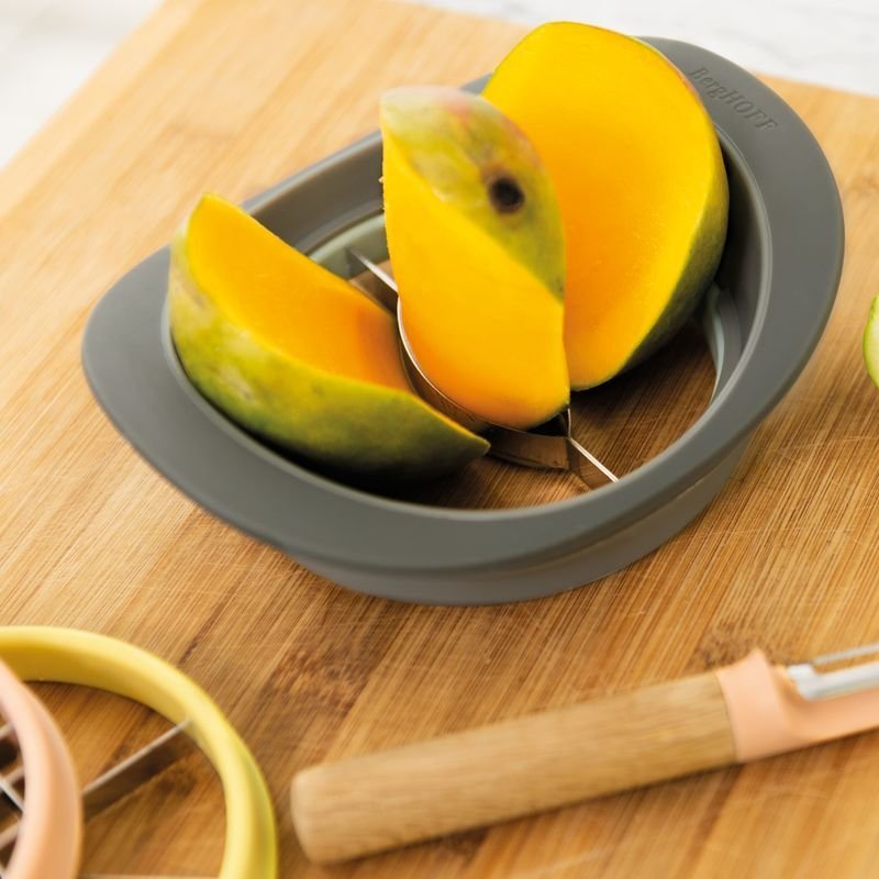 The Leo all-in-one slicer set in just three words? Quick, safe and easy! This well-designed slicing tool for fruits and vegetables allows you to core, slice and dice apples, mangos, potatoes … with one simple press. The sharp interchangeable blades create perfect segments and remove the seeds in seconds while the soft-touch handle ensures a comfortable grip. When you’re done cutting, just put the slicer in the dishwasher and enjoy your healthy treat.