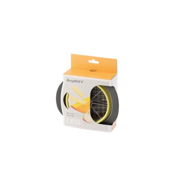 Composition | 1 x slicer body – 18,00 x 14,50 x 5,00 cm (7 x 6 x 2″) 1 x cutter insert mango – 13,00 x 13,00 x 5,00 cm (5 x 5 x 2″) 1 x cutter insert apple – 13,00 x 13,00 x 5,00 cm (5 x 5 x 2″) 1 x cutter insert potato – 13,00 x 13,00 x 5,00 cm (5 x 5 x 2″) |