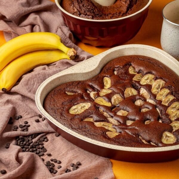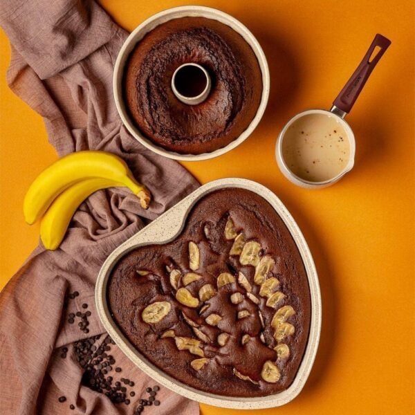 The heart-shaped form is made of carbon steel which ensures uniform heat distribution in the pan for better cooking results. The non-stick ceramic coating allows easy removal of the cake, as well as easy cleaning of the pan after use.