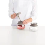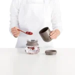The cups (250 ml each) have a rounded shape. They can be inserted into each other (and then into the container!) and easily stored. The silicone rims do not get hot – they are comfortable handles.