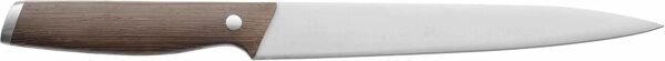 Slicing through meat, fish or poultry without tearing the flesh is child’s play when you’ve got the right knife in your hands. With this razor-sharp carving knife you have exactly what you need since the long narrow blade easily slices and cleans various types of food and the stylish wooden handle offers a safe and comfortable grip. So when that big roast makes its way to the table, this stylish carving knife is the perfect partner to make those thin and perfectly even slices!