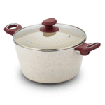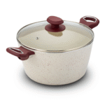 The 3 layers and the quality of ceramic coating on the inner and outer surfaces are very important for the long life of the pan. The top edge finishing and the “soft touch” handle complete the characteristics of durability and quality of the cookware.