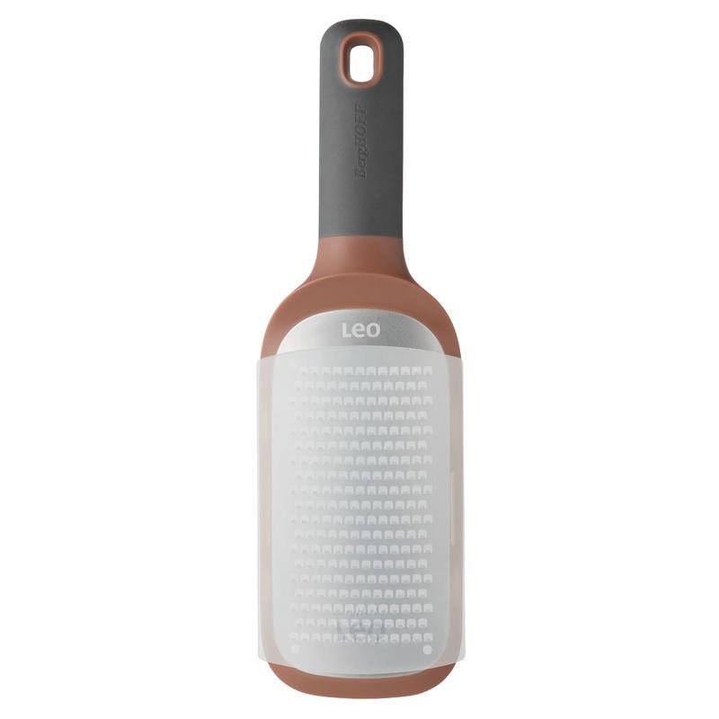 Want to make fast work of grating hard cheeses, carrots, chocolate or coconut? With this coarse paddle grater it’s easy as pie! The ergonomic soft-grip handle provides you with a safe and comfortable grip so that when you place the non-slip base on the countertop or use the integrated bowl notches on a mixing bowl, you can just let the ultra-sharp etched blade work its magic. To safely store the coarse grater and make sure the blade stays in tiptop condition, it comes with a fitted protective cover.