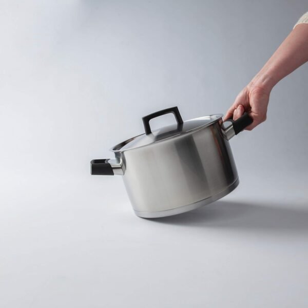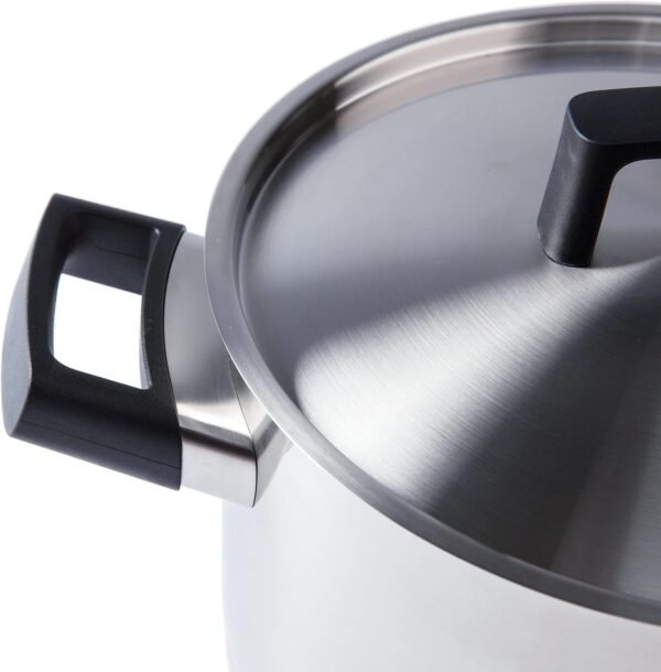 This high-quality stainless steel casserole with satin finish is great for stewing vegetables or preparing a medium-sized dish. Check the amounts you need with the help of the capacity markings on the inside and transfer the casserole safely from any stovetop to the table thanks to the stay-cool handles. The matching lid keeps the heat inside the pot, avoiding valuable energy to be lost.