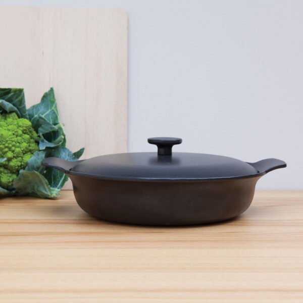 Covered deep skillet cast iron black 28 cm