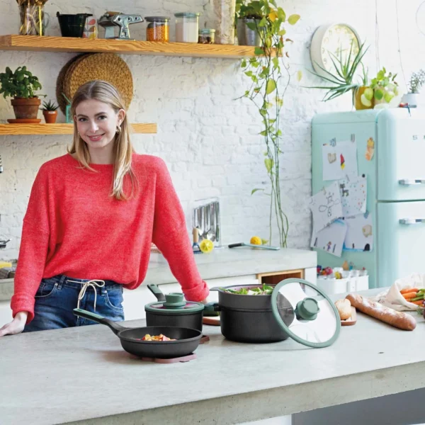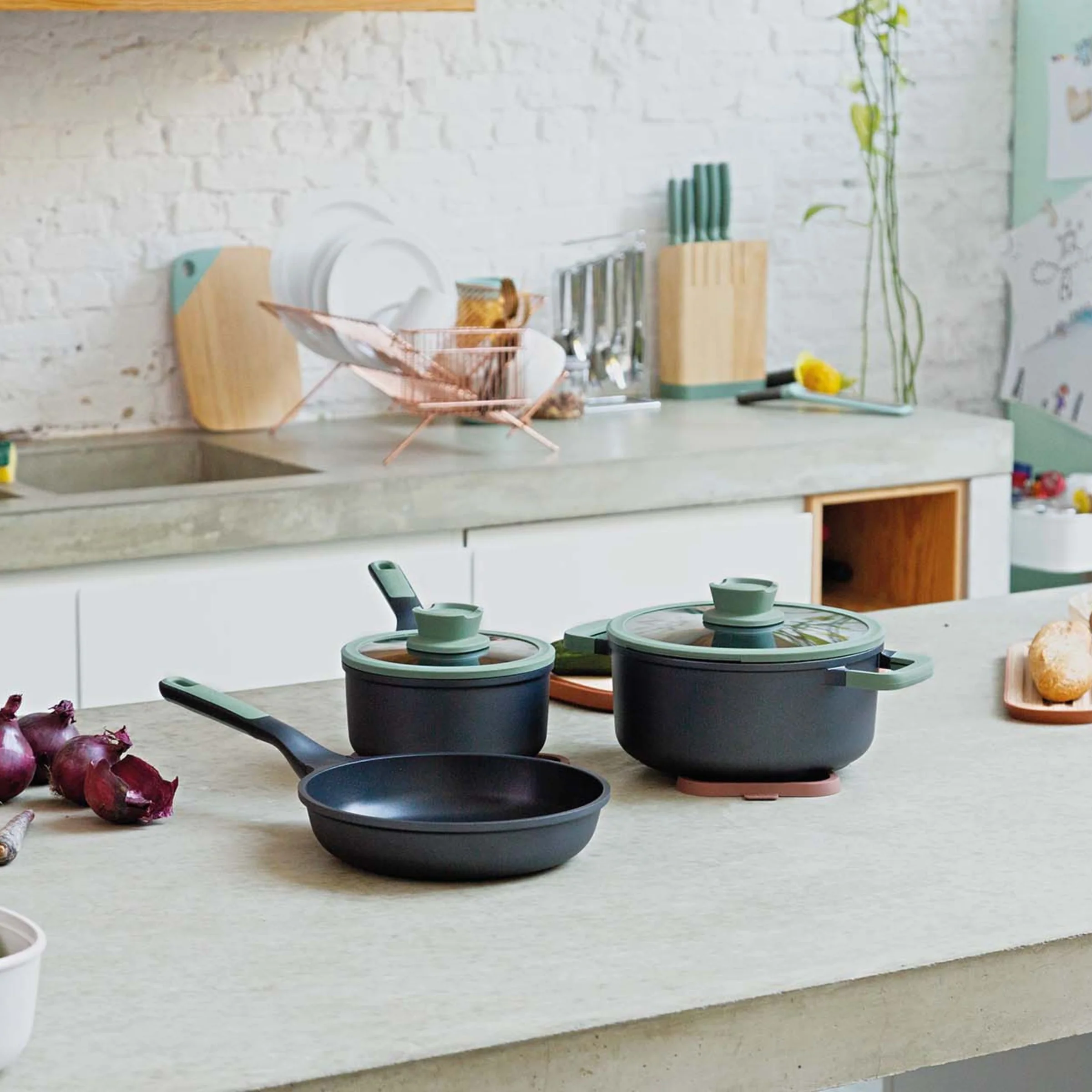 Whether you’re cooking for one, making a side dish or preparing a savoury sauce, this saucepan with matching glass lid that’s equipped with a drain hole for easy straining and spoon rest function is a great kitchen essential. Convenient for any cooktop, it’s easy to balance in your hand due to the soft-touch handle while the high-quality cast aluminium ensures everything heats up quickly and evenly. No need to worry about the clean-up thanks to the high-end non-stick coating.