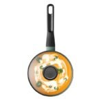 With this colourful sauce pan you’ll conjure up a wide variety of delicious sauces. Thanks to the high quality non-stick coating there is little to no oil needed and it will even ensure you of easily food release and clean up after cooking. The aluminium saucepan heats up fast with an ensures even heat distribution. Besides, the pan can be used on any kind of stovetop, induction included. The glossy phenoloc handle ensures you of moving the sauce pan safely from the stove to the dinner table in no time.