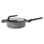 Pan-frying chicken, braising meat or sautéing vegetables, whatever your dish needs, you’ll easily get it done with this covered sauté pan. It’s suitable for any kind of stovetop and comes with a stay-cool detachable handle that you can snap off to save valuable storage space in your kitchen drawer. The lightweight aluminium body features a multilayered non-stick coating that ensures an easy food release and special pouring rims for dripless pouring. To top this off, there’s the clear glass lid that can be placed vertically on the body of the pan to keep your hands free for stirring and serving and has two different sized pouring areas for easy straining of various ingredients.