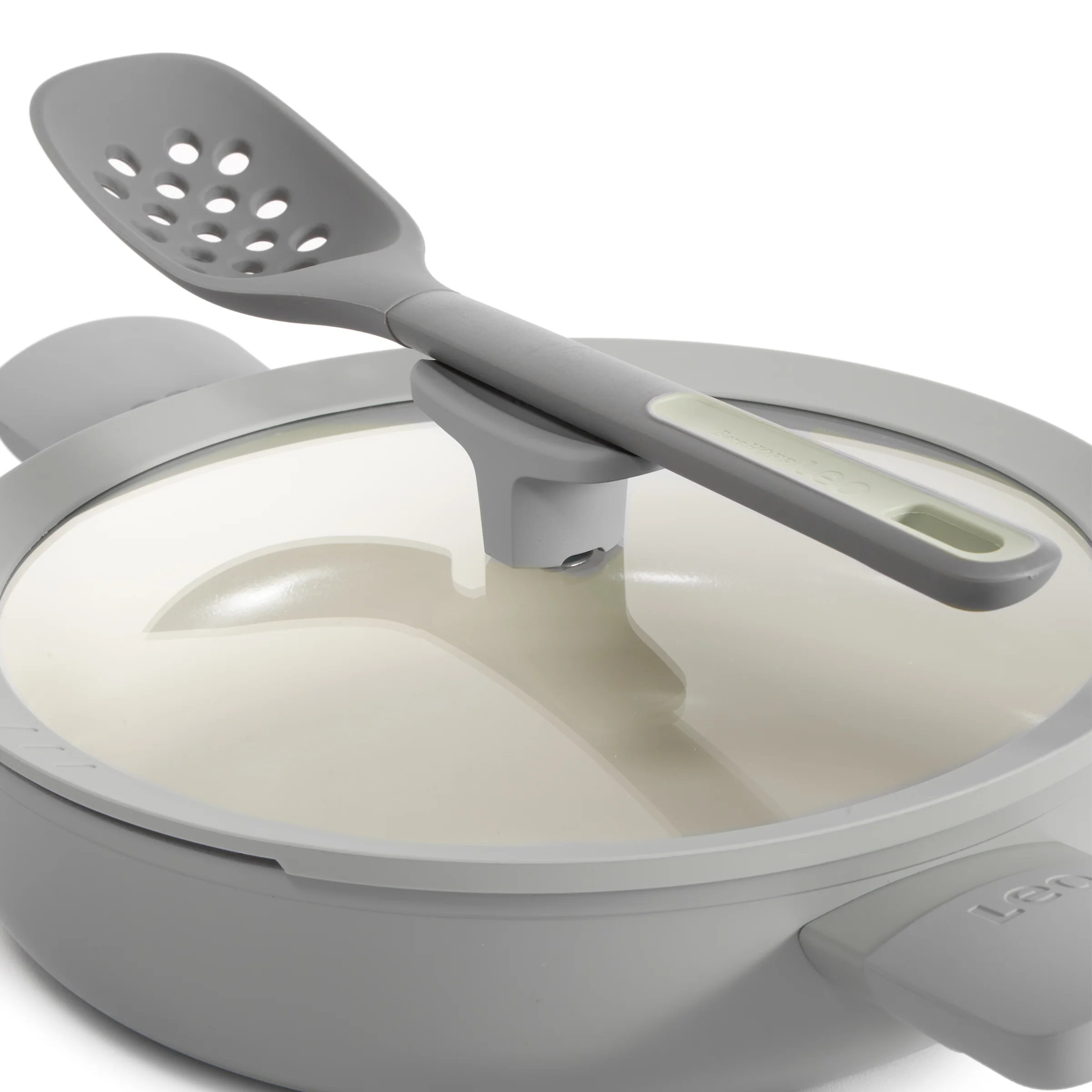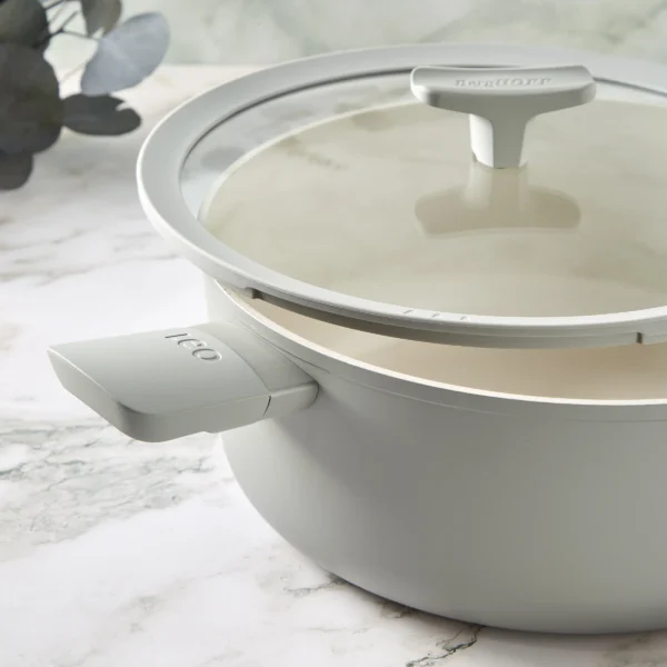 Unique features | Clear glass cover with integrated air duct and straining function Special knob with spoon rest function Made with recycled aluminium Healthy CeraGreen ceramic non-stick coating (PFAS-free) Full disk base that conducts heat fast and evenly for energy-efficient cooking Suitable for all cooktops including induction and downdraft exhaust systems Ovenproof up to 180°C / 356°F |