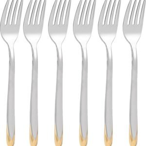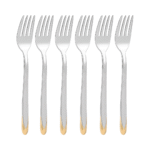 - Refined dessert fork made from durable Cr-Ni stainless steel with a gilded finish for an elegant touch