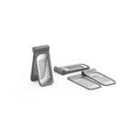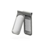 Introducing our innovative double coarse & ribbon grater, made with recycled plastics and crafted for ultimate convenience and efficiency in your kitchen. Use it fully assembled to grate effortlessly over a food container, a cutting board, a plate, … , the non-slip strip ensures stability. Alternatively, detach the two graters to use them as single graters over a bowl, a serving dish, or casserole. Each side of the grater offers a different texture: one side features a coarse texture for robust grating, while the other side is a ribbon grater. Whether you need a stable surface for heavy-duty grating or a portable tool for precision tasks, our double coarse & ribbon grater adapts to your needs, making it an indispensable tool for any culinary enthusiast.