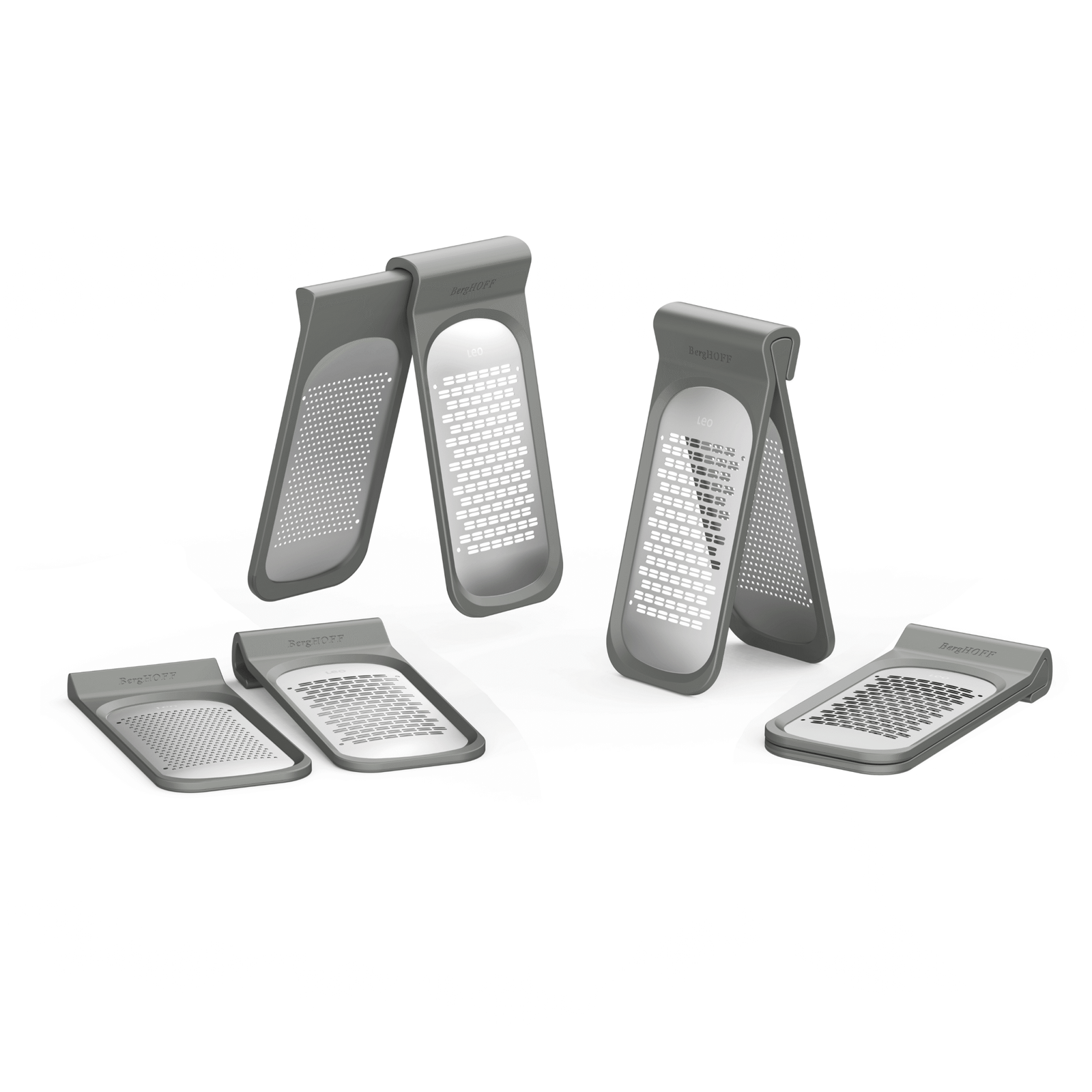 | Unique features | Made with recycled plastics, Use in standing position for increased stability, Slides apart—each side can be used separately, Foldable for space-saving storage, Two different grating textures for multifunctional use |