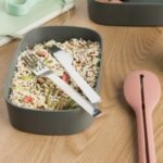 Pack a complete lunch in this dual lunch box! Whether you’re at school, at the office or enjoying a cosy picnic, it’s the perfect solution to take a healthy and balanced meal with you on all your adventures. The two-tiered compartments are kept together with a convenient elastic strap and are microwave safe as well as freezerproof.