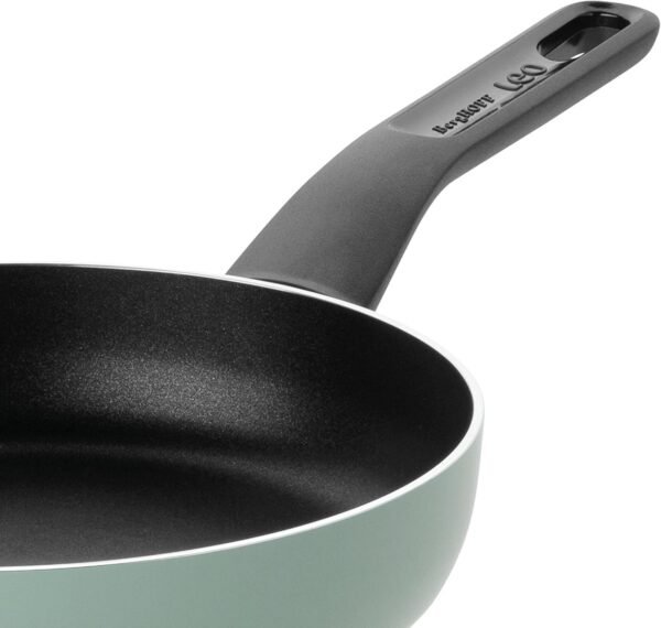 This coloured frying pan is the perfect size to prepare your daily meal for two. The aluminum frying pan heats up fast and provides an even heat distribution while the non-stick coating provides you the effort to use less to no oil. The glossy phenolic resin handle ensures you a comfortable and safe grip when lifting the pan. The matching colour sage and slate allow you to combine the different sizes of frying pans in both colours.