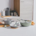 | Unique features | Made with recycled aluminium Healthy CeraGreen ceramic non-stick coating (PFAS-free) Full disk base that conducts heat fast and evenly for energy-efficient cooking Ovenproof up to 180°C / 356°F |