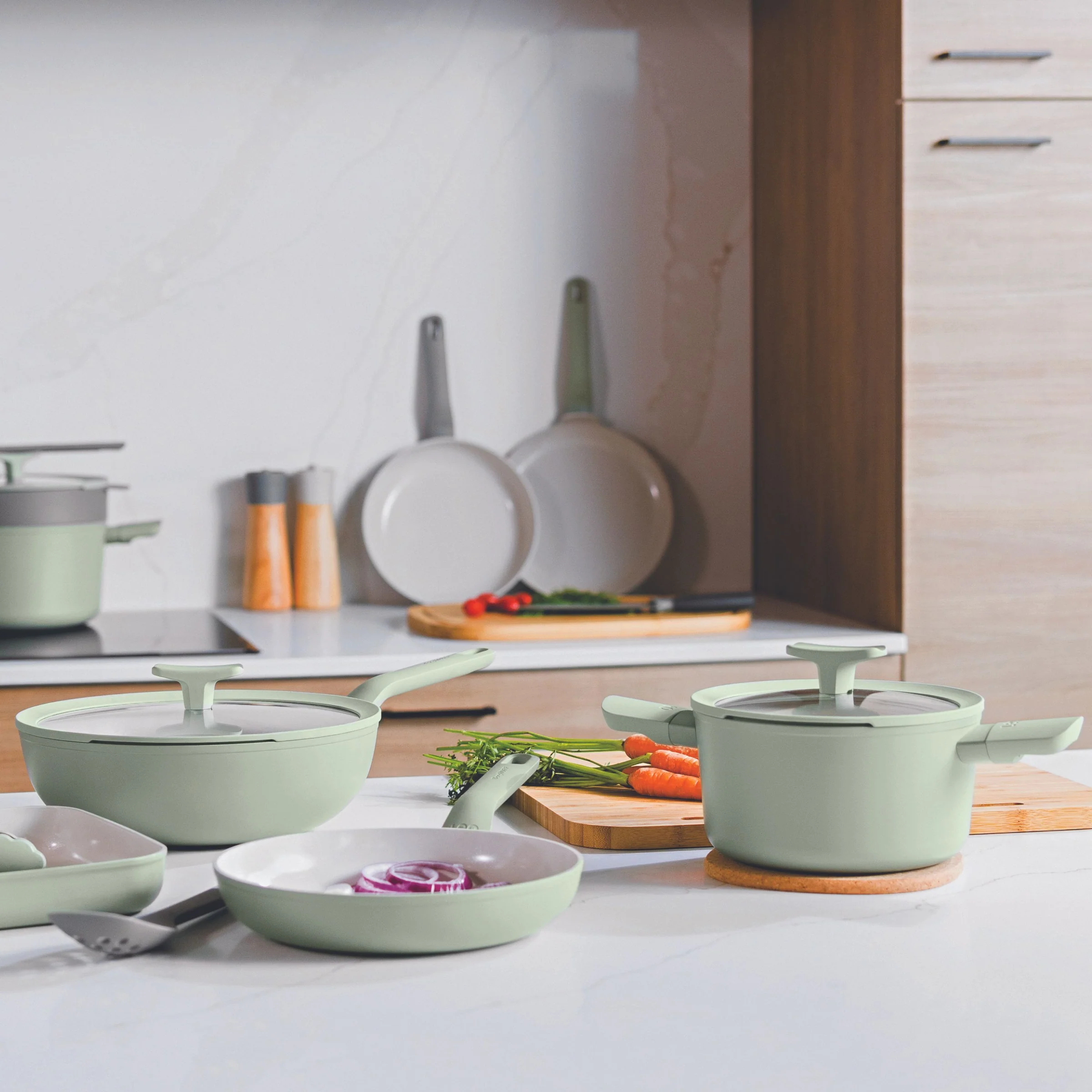 | Unique features | Made with recycled aluminium Healthy CeraGreen ceramic non-stick coating (PFAS-free) Full disk base that conducts heat fast and evenly for energy-efficient cooking Ovenproof up to 180°C / 356°F |