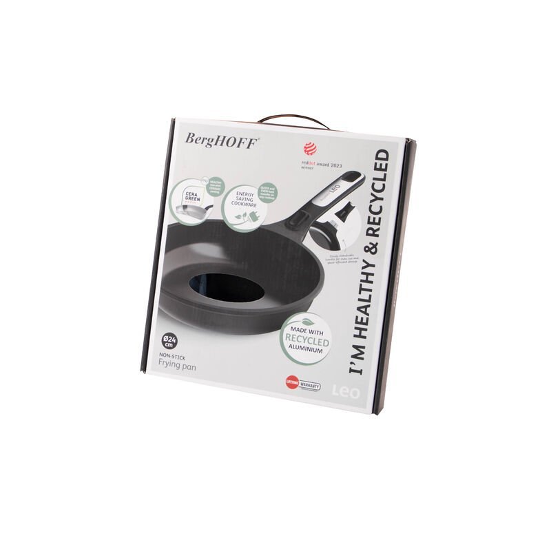 | Unique features | Ovenproof up to 230°C / 446°F (without detachable handle) Made with recycled aluminium Healthy CeraGreen ceramic non-stick coating (PFAS-free) Easily detachable handle for oven use and space-efficient storage Full disk base that conducts heat fast and evenly for energy-efficient cooking |