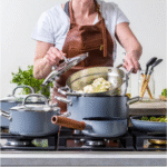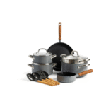 | Unique Features | • 13-piece hard-anodized 3-ply cookware set • Includes frying pan, saucepan, casserole pans, steamer insert, and utensils • Tempered glass lids for durability and visibility • Cool-touch wooden handles • Scratch-resistant and PTFE & PFOA-free non-stick coating • Suitable for all stove types including induction |