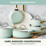 - ULTRA-DURABLE: Metal utensil safe and reinforced with diamonds, this premium nonstick cookware offers long-lasting performance and easy food release.