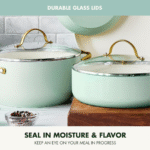 - TEMPERED GLASS LIDS: Durable glass lids for easy food monitoring, oven safe up to 425 °F.