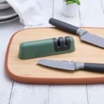Check out this beautifully designed knife sharpener to keep your stainless steel knives razor sharp. Simply pulling the knife through the slot several times and you are good to go. The coarse side prepares the knife for sharpening and the fine slot polishes the blade and removes any irregularities. To ensure user safety, the soft-touch handle is ergonomic designed and base of the sharpener has a non-slip feature for extra stability.