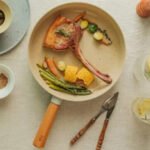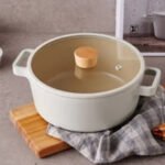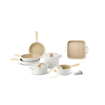 Neoflam Fika 12 pieces non-stick ceramic set, Korean, Beige Color – consists of 18 cm saucepan with glass lid; 22 cm stockpot with glass lid; 22 cm low stockpot with glass lid; 24 cm frypan; 28 cm frypan, 26 cm wok, 28 cm grill & 2 silcone gloves.