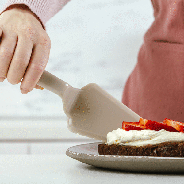 Made of durable plastic, suitable for contact with food, with an ergonomic handle for comfortable handling. The serrated side on its surface makes it easy for you to cut and serve, while the practical hole at the edge of the handle allows you to hang it.