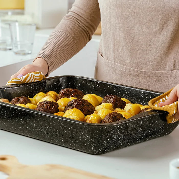 Non-stick rectangular NATURE carbon steel roaster with stone coating