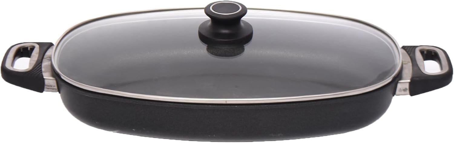 The Roasting Dish, 40 Ă— 24 cm with 10 liters capacity by First Titanium is a versatile and spacious pan designed for healthy cooking and roasting. Its large size and deep design make it perfect for roasting meats, poultry, vegetables, and preparing low-fat meals while preserving essential vitamins and minerals. The included lid and fastening heat system ensure even heat distribution and help retain moisture and flavor. Made from premium titanium, it provides lightweight handling, long-lasting durability, and convenience for everyday cooking and special family meals.
