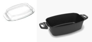 Comes with a lid and fastening heat system for even cooking and moisture retention.