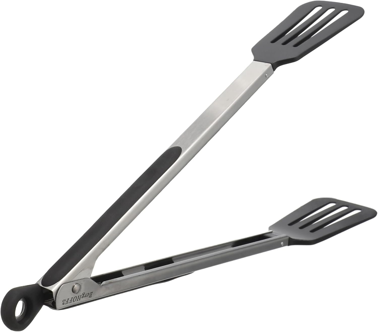 Meat, fish, vegetables or salad, whatever you’re serving, this long serving spatula with non-slip handle and comfortable thumb rests is the perfect kitchen assistant. The heat-resistant nylon head easily grabs a hold of your ingredients without damaging any non-stick surfaces and can conveniently be stored in your kitchen drawer or on a rack once you’ve pulled the loop to activate the locking mechanism.