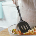 It has an ergonomic, non-slip soft touch handle, for comfortable and safe handling. The practical hole at the edge of the handle allows you to hang it. The slots on the surface of the spatula allow the food to drain from water or cooking oil.