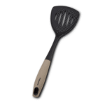 It has an ergonomic, non-slip soft touch handle, for comfortable and safe handling. The practical hole at the edge of the handle allows you to hang it. The slots in the surface of the spatula allow the food to drain from water or cooking oil.