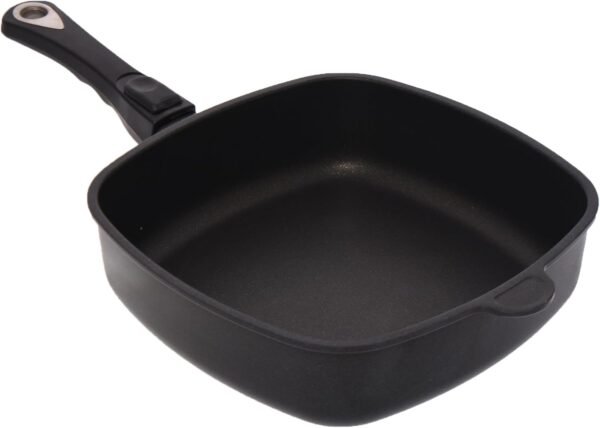 The Square Pan Deep, 26 × 26 × 7 cm – Grill Surface (Removable Handle) by First Titanium is a multifunctional pan designed for grilling, roasting, and everyday cooking. Its deep 7 cm design and grill surface make it perfect for healthier cooking with authentic grill marks, while the removable handle ensures space-saving storage and versatility.