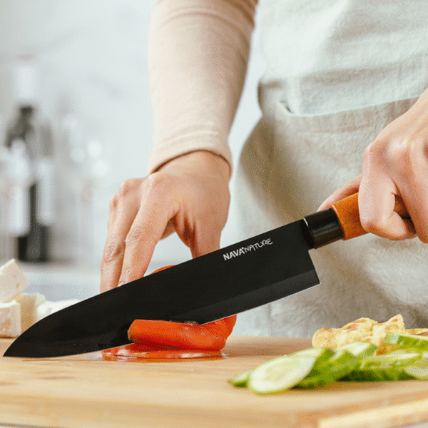 The Chef knife Nature by NAVA is one of the most essential kitchen knives . With a wide blade and a sharp tip, it is a versatile knife that covers a variety of tasks during the meal preparation process. Ideal to chop fruits and vegetables quickly and accurately, to mince herbs delicately, but also to fillet meat and fish into smaller pieces.