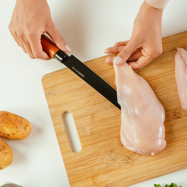 – Always use a cutting board to protect your countertop and the blade of the knife.