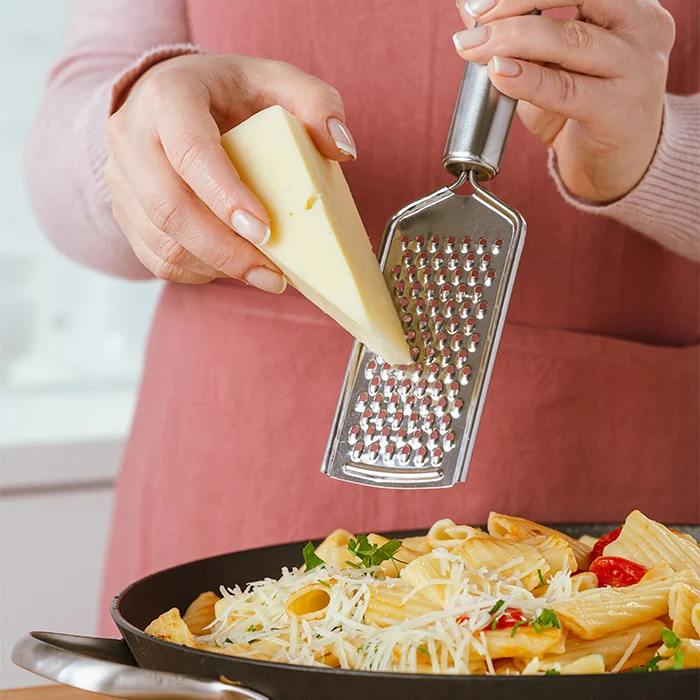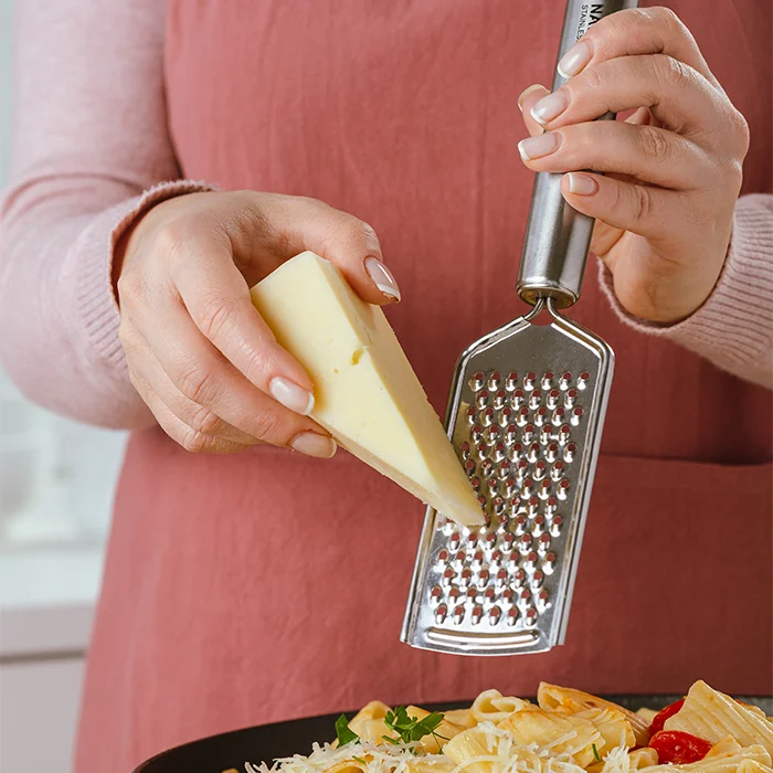 The handheld grater Acer by NAVA is ideal for grating lemon or orange, hard cheese, chocolate and spices.