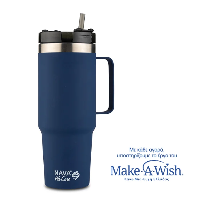 The Nava’s 900ml “We Care” insulated stainless steel travel mug with straw, in a beautiful color, is an innovative product that combines functionality with style.