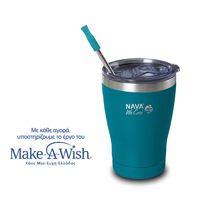 The Nava’s 360ml “We Care” insulated travel mug with stainless steel straw, in a beautiful color, is an innovative product that combines functionality with style.