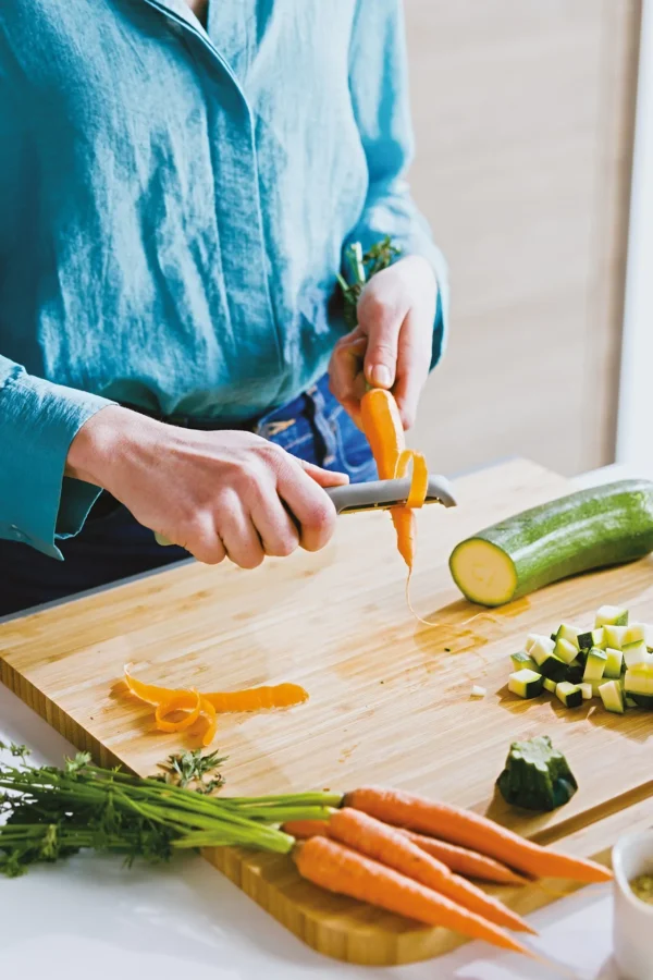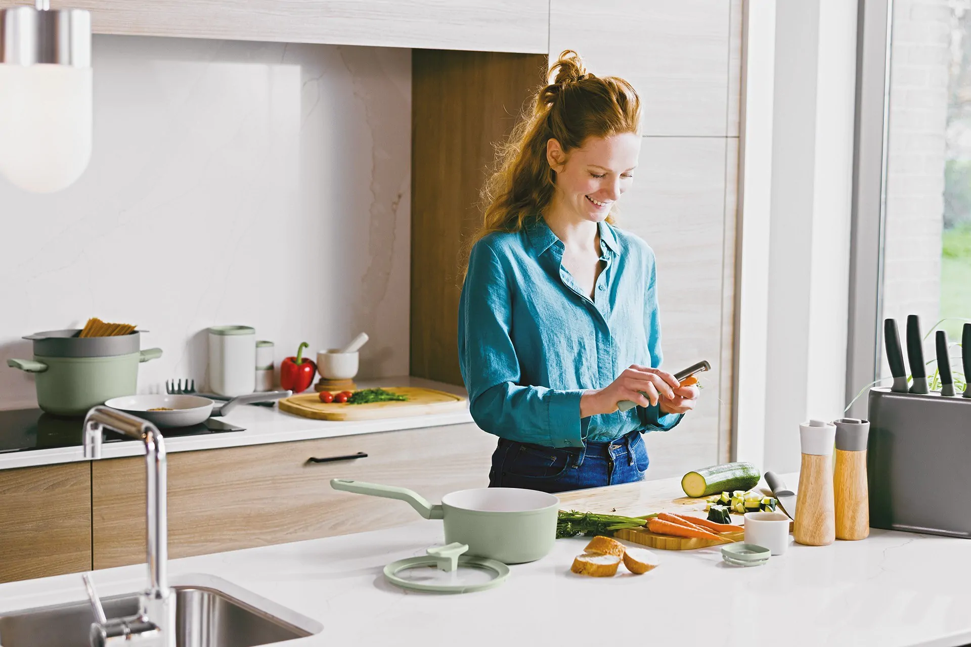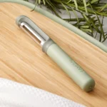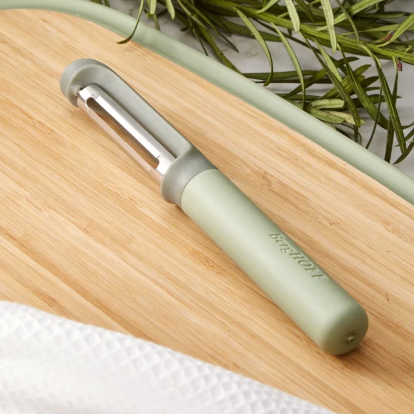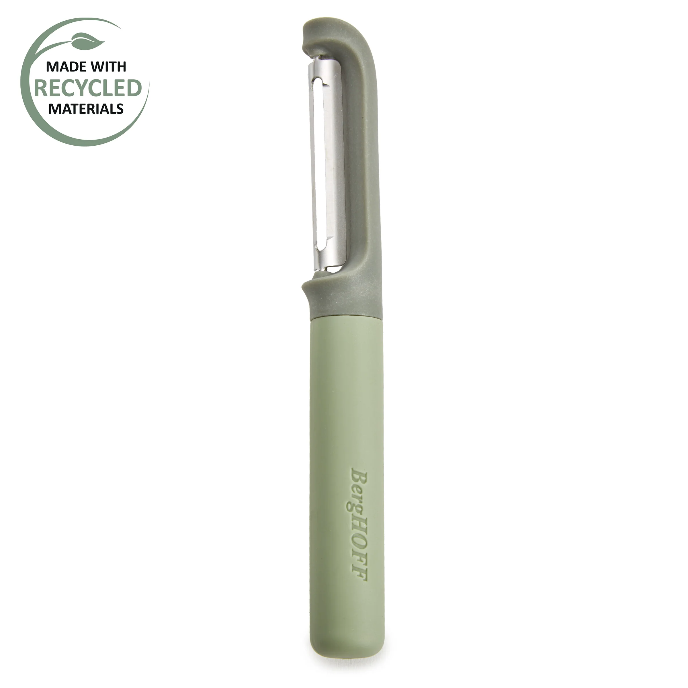 A bag of potatoes, a stack of carrots or a bunch of apples, you’ll have them peeled in no time with the Leo peeler made with recycled plastic. The stainless steel blade glides right through the skins, giving a thin peeling you won’t be able to match with a knife. At last, it’s fun to peel fruit and vegetables thanks to the lively colours and the ergonomic soft-touch handle that fits your hand like a glove!